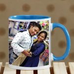 Let your gift make the most beautiful memories with a personalized picture ceramic coffee mug in white and blue. Just tell me the colour of the mug in the message box you want to make.